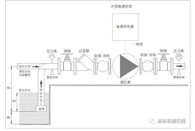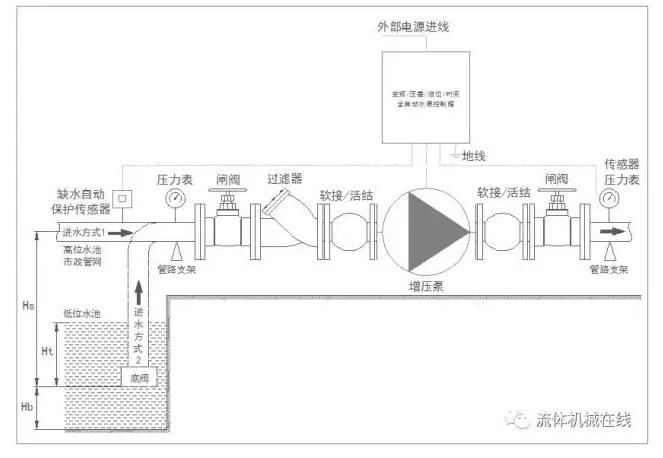 非自動(dòng)的管道增壓泵只需要電源開(kāi)關(guān)箱人為控制增壓泵的啟停即可,但是為了安裝、維護(hù)和調(diào)試方便,外部管路附件必不可少。
