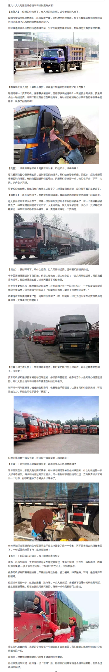 這8個人說的8句話,告訴你貨車司機的生存現狀!
